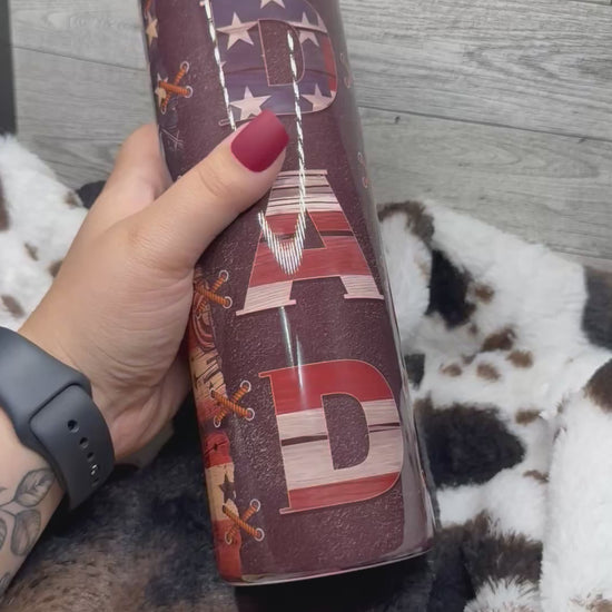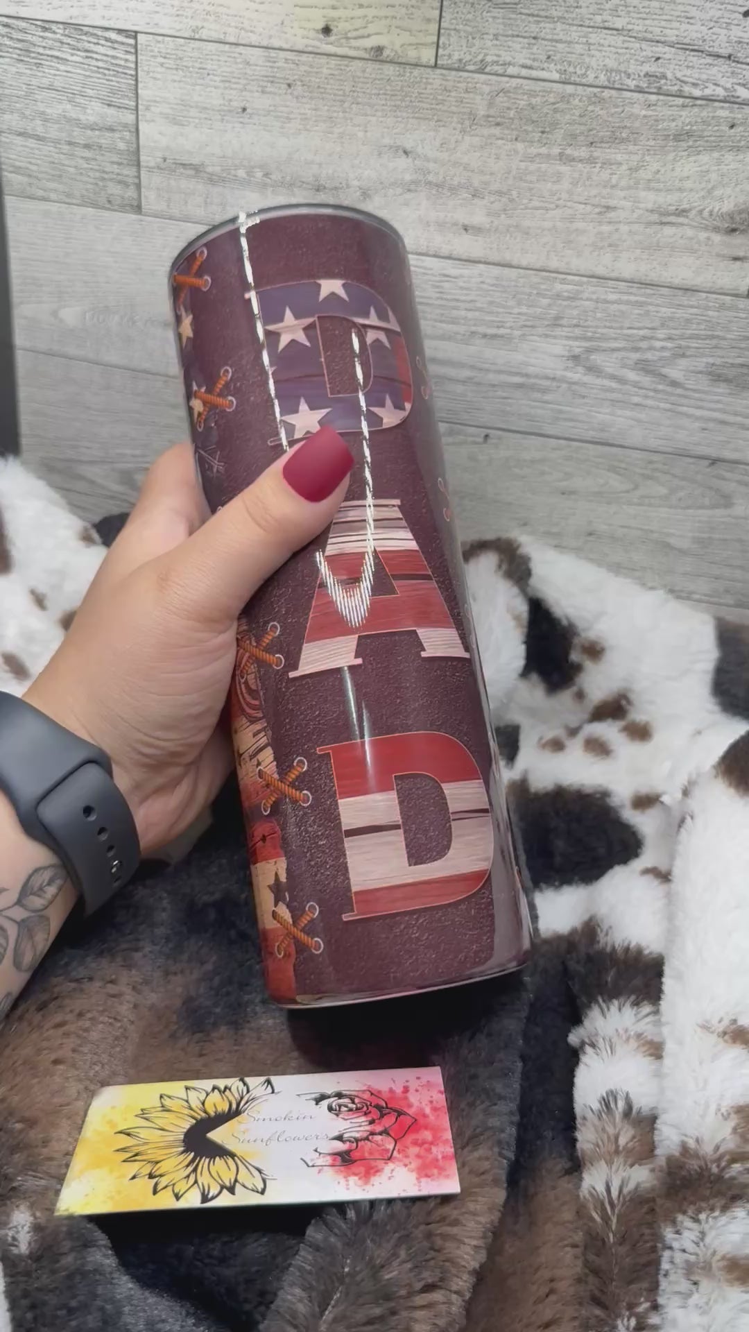 Show your love for Dad with this patriotic, one-of-a-kind 20oz stainless steel tumbler! Featuring a rustic, distressed American flag design within the letters "DAD," this tumbler is perfect for keeping drinks hot or cold for hours. It includes a clear lid and a matching straw. A fantastic gift for Father's Day, birthdays, or any occasion to celebrate the special Dad in your life.