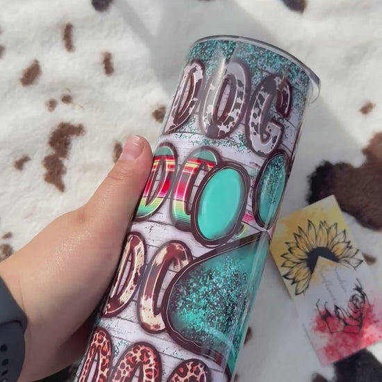 Show your love for your furry best friend with this stylish "Dog Mom" tumbler! Featuring a rustic wood-grain background, this tumbler boasts a vibrant turquoise paw print with a touch of sparkle. The letters "DOG" are spelled out in a trendy leopard print, adding a touch of sass. Perfect for keeping your drinks hot or cold on the go, this tumbler is a must-have for any dog lover.